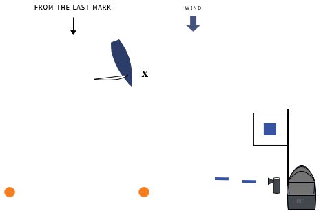 Boats SO (on starboard tack) and PI (on port tack) are approaching the finish- ing line on a collision course. SO reaches the zone of the finishing mark first and hails, “Starboard!” PI hails, “Room!” When right at the mark, PI begins to gybe inside of SO and SO is forced to bear away to avoid hitting PI. SO protests PI.