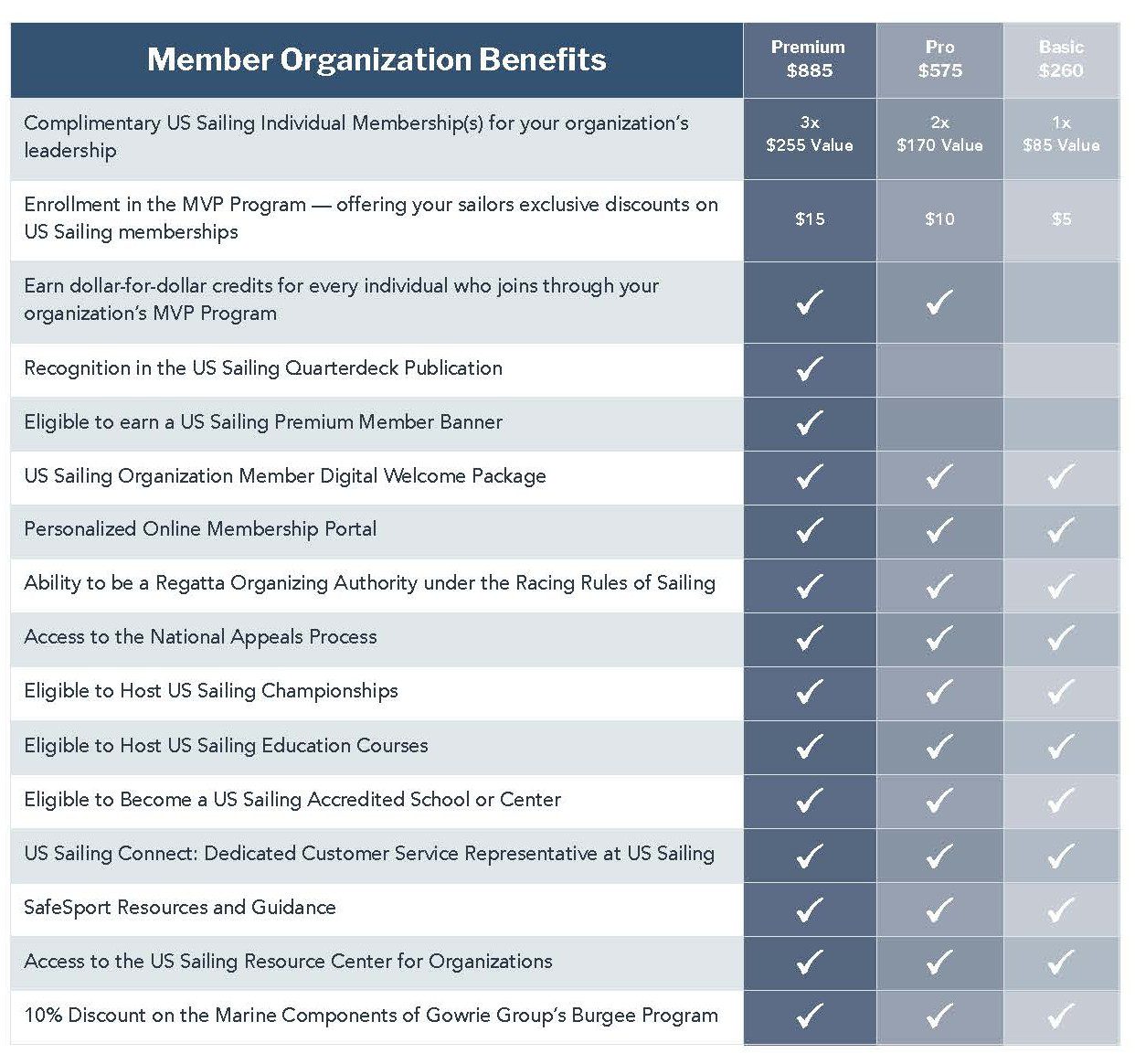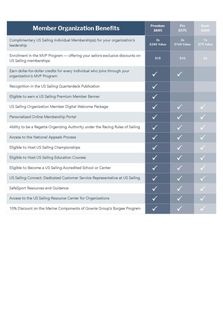 - Basic, Pro, and Premium Organizations have the ability to extend a special discount to their members when they join US Sailing through the MVP Program.