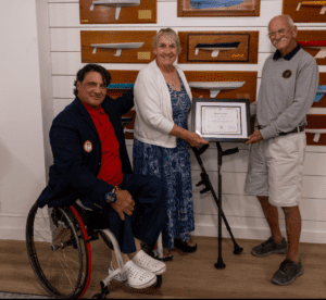“In your midst, you have an individual who has dedicated countless hours to ensuring that all sailors are able to get out on the water and compete at a high level,” said Alison in her award presentation remarks. “In the early days of Paralympic Sailing, he started creating adaptations that enabled sailors to maximize their abilities on the water, so that they could compete on an equal footing with able bodied counterparts.”