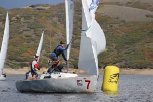 The Jordanelle Reservoir, located just above the town of Heber City at an elevation of nearly 6,200 feet, offered a dramatic backdrop for this year’s championship. With the Wasatch Mountains on the horizon, sailors navigated shifting winds and rapid weather changes that reflect the mountain lake’s unique conditions.
